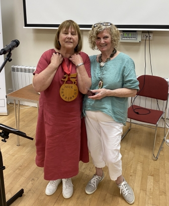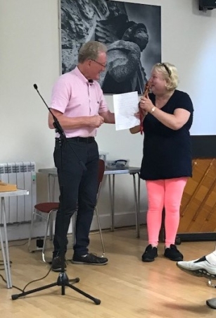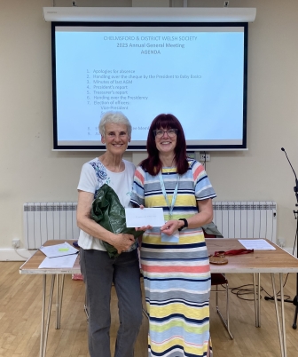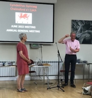He finally handed over the Presidency to Sue Almond and thanked her for her enthusiastic support and help. Meinir Wyn Davies will take on the role of Vice President.