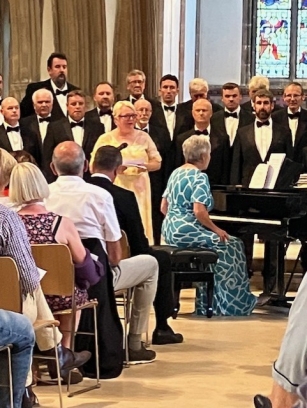 Cor Godre'r Aran Male Voice Choir gave a superb performance at Saturday night's concert at Chelmsford Cathedral. The large audience enjoyed an outstanding evening's entertainment from the choir, along with soloists Elis Jones and Sion Eilir Roberts/Cafwyd perfformiad gwych gan Cor Godre'r Aran mewn cyngerdd nos Sadwrn yn Eglwys Gadeiriol Chelmsford. Mwynhaodd y gynulleidfa berfformiad adderchog gan y cor, ynghyd ag unadwyr Elis Jones a Sion Eilir Roberts.