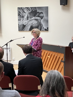 Vice President Meinir Wyn Davies thanks Gwenllian for performing at the Chapter House
