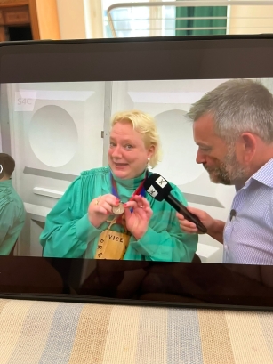 Meinir Wyn Davies attended the National Eisteddfod at Tregaron this summer. She was interviewed by Tudur Owen on S4C, who was intrigued and fascinated by her Vice President's badge. During their conversation Tudur informed viewers he was well aware of our society, having performed for us and told viewers he remembers Athur and Carys.