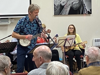 Yn ogystal, roedd Hilary Camp yn ein diddanu ar ei gitar a siarad am ei