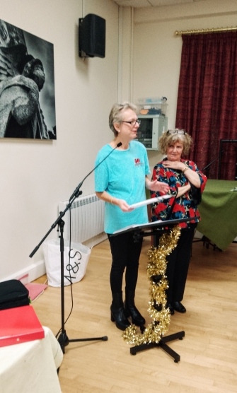Sue and Meinir - bottom right, read out our Christmas Greetings