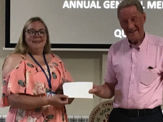 Gwil handed over a cheque for £1,000 to the society's nominated charity for his year of office, St. Luke's Hospice. Kerry Chambers, representing St. Luke's, thanked the society for their generousity and updated our members on the work of the hospice.