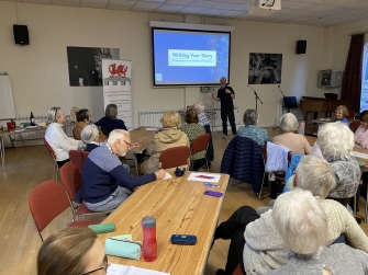 Dan gave us an enthralling account of his career in film making and an insight into the 5 Act Narrative Plan that forms the basis of a good story/Rhoddodd Dan yr hanes cyfareddol inni o'i yrfa yn gwneud ffilmiau a chipolwg ar y Cynllun Naratif 5 Act a all gadarnhau stori dda.